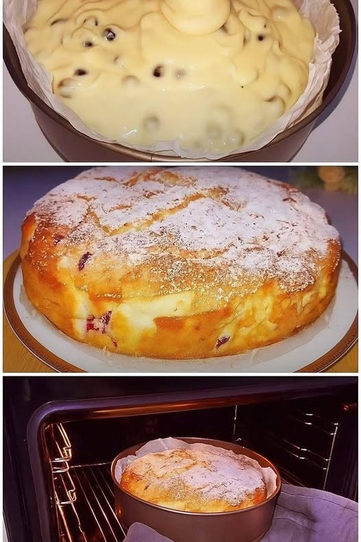 Κέικ γιαουρτιού με κεράσια 🧾 Υλικά 3 αυγά 200 γρ. ζάχαρη 200 γρ. γιαούρτι στραγγιστό 100 ml φυτικό λάδι 300 γρ. αλεύρι για όλες τις χρήσεις 1 φακελάκι μπέικιν πάουντερ 1 βανίλια 200 γρ. κεράσια (φρέσκα ή κατεψυγμένα, χωρίς κουκούτσια) Άχνη ζάχαρη για πασπάλισμα Η υπόλοιπη συνταγή στην επόμενη σελίδα