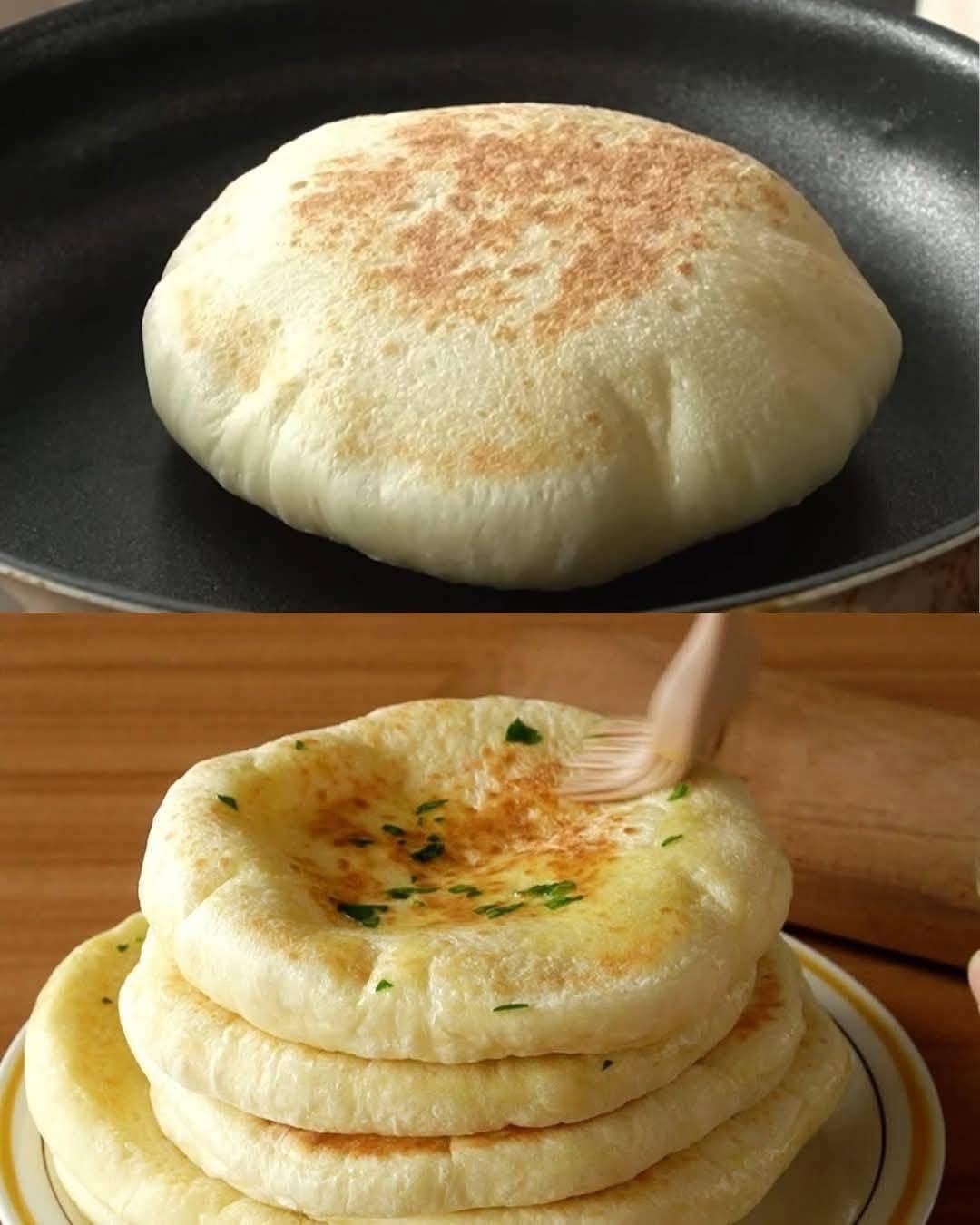 🍞 Σπιτική πίτα (χωρίς φούρνο!) Ζεστή, μαλακή και νόστιμη — ιδανική για σάντουιτς ή για βουτιές σε χούμους 😋