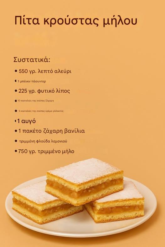 Μια νόστιμη συνταγή για σνακ φτιαγμένο με μια πολύ απλή ζύμη, χωρίς μαγιά ή βούτυρο, και με την προσθήκη μήλων. Όλοι θα το λατρέψουν! ΣΥΣΤΑΤΙΚΑ: – 1 μήλο· – 1 ή· – 3 κουταλιές της σούπας ζάχαρη άχνη· – ζάχαρη βανίλιας (κατά βούληση)· – 3 κουταλιές της σούπας ηλιέλαιο· – 200 γρ. γιαούρτι για όλους· … Read more